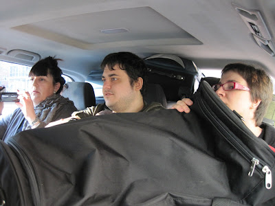 Siguiendo con las anécdotas dentro de los taxis: el domingo por la mañana casi todos nos fuimos a la feria a echar un último vistazo y desde allí para el aeropuerto. Así que desayunamos, hicimos el chek-out, cargamos todo el equipaje en un taxi como pudimos y para la feria. No sabemos cómo, pero el taxista con una delicadeza máxima nos colocó las maletas de una manera genial y sin problemas (vaya cambio respecto al "taxista loco"). Al cabo de 5 minutos Anna empezó a notar algo de aire y los demás asentimos y empezamos todos a mirar de dónde venía... hasta que Anna exclamó: "¡¡¡¡El maletero está abiertooooooooo!!!!" Efectivamente, íbamos en un taxi de 8 plazas, todo lleno de maletas a presión y cargadas de todas las compras de la feria, a no sé cuánta velocidad y con el maletero abierto. Así que empezamos a gritar STOPPPPP, STOPPPPP y el taxista paró el coche, se bajó descojonándose de nuestro histerismo y cerró la puerta. Después del pequeño susto las risas fueron buenas.